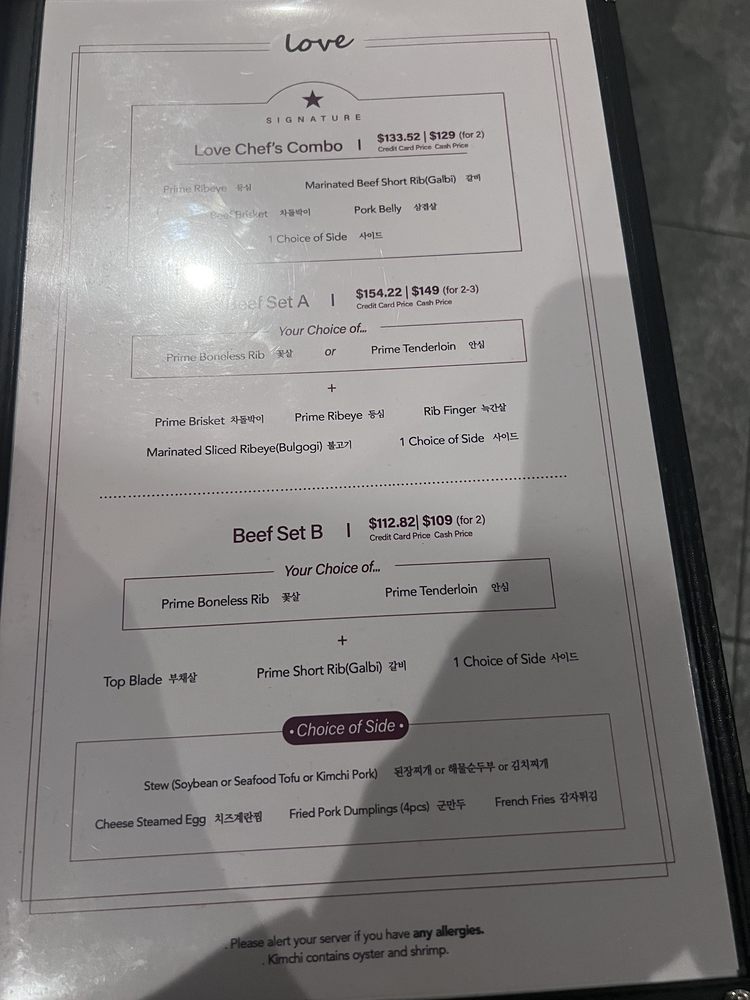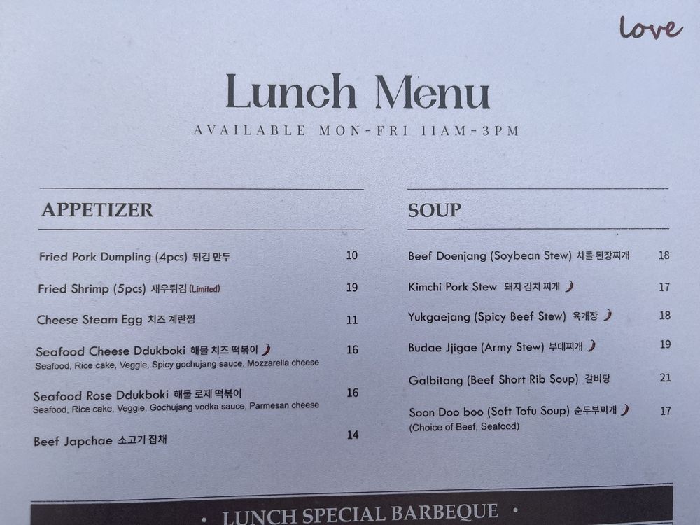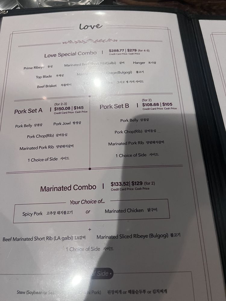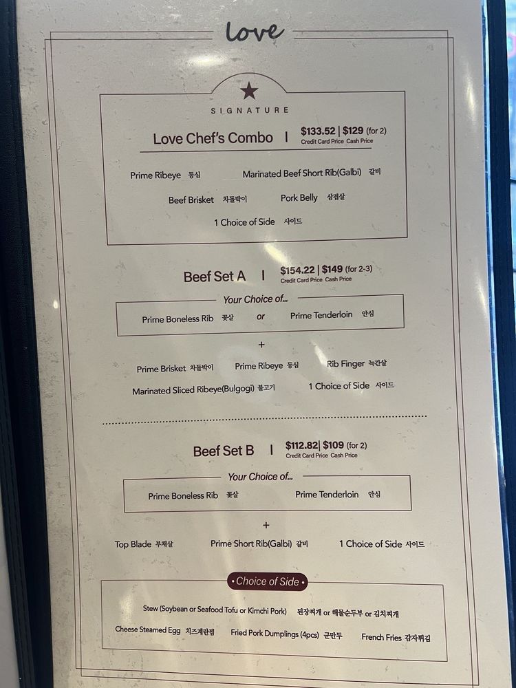 LOVE Korean BBQ Menu (Update 2025)